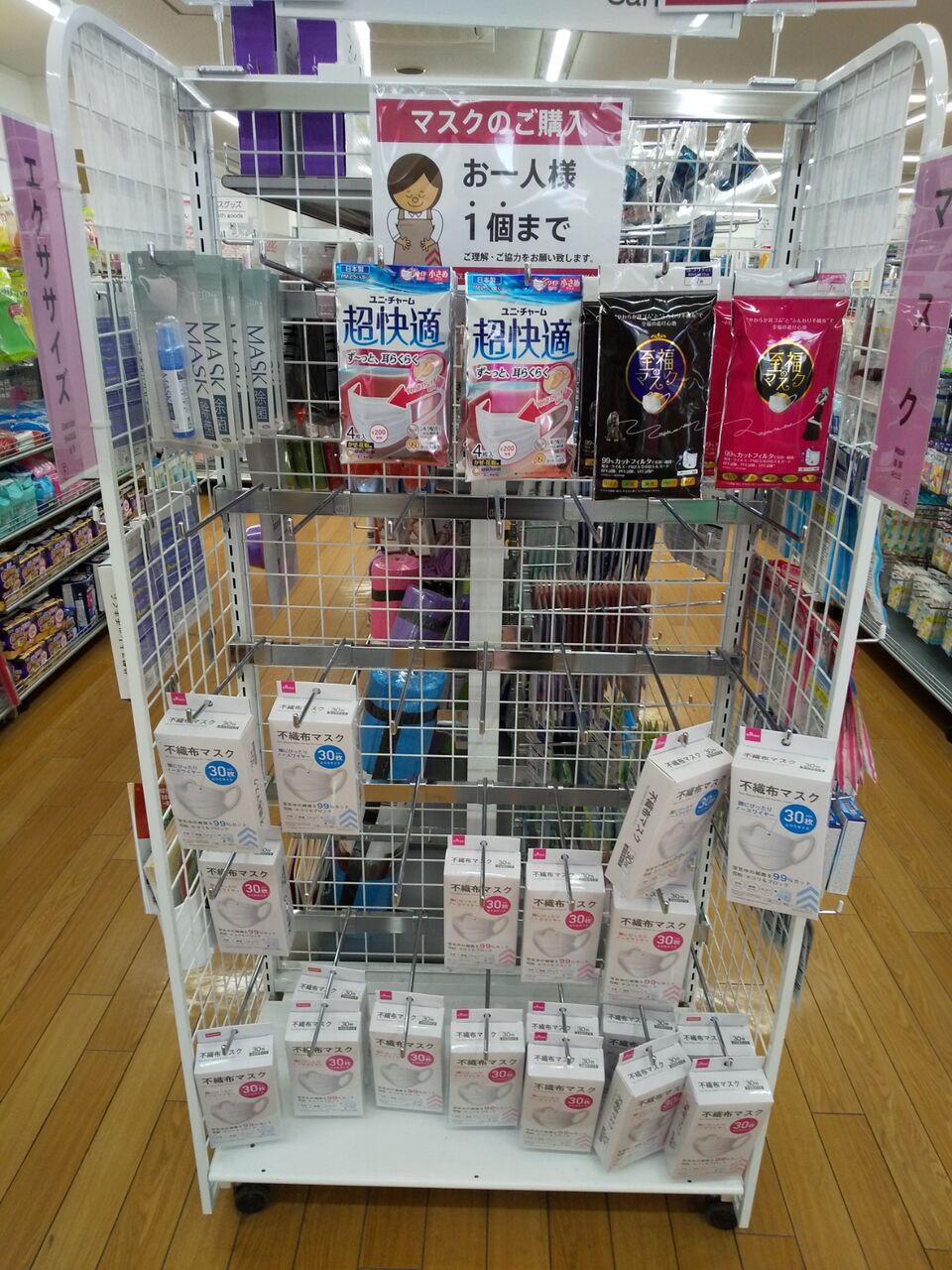 どこに行ってもみつからない!って場合、ちょっと割高になるかもしれませんが、コンビニや薬局の数枚しか入っていないマスクでもあった方がいいかもですね