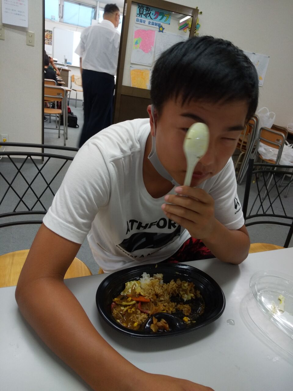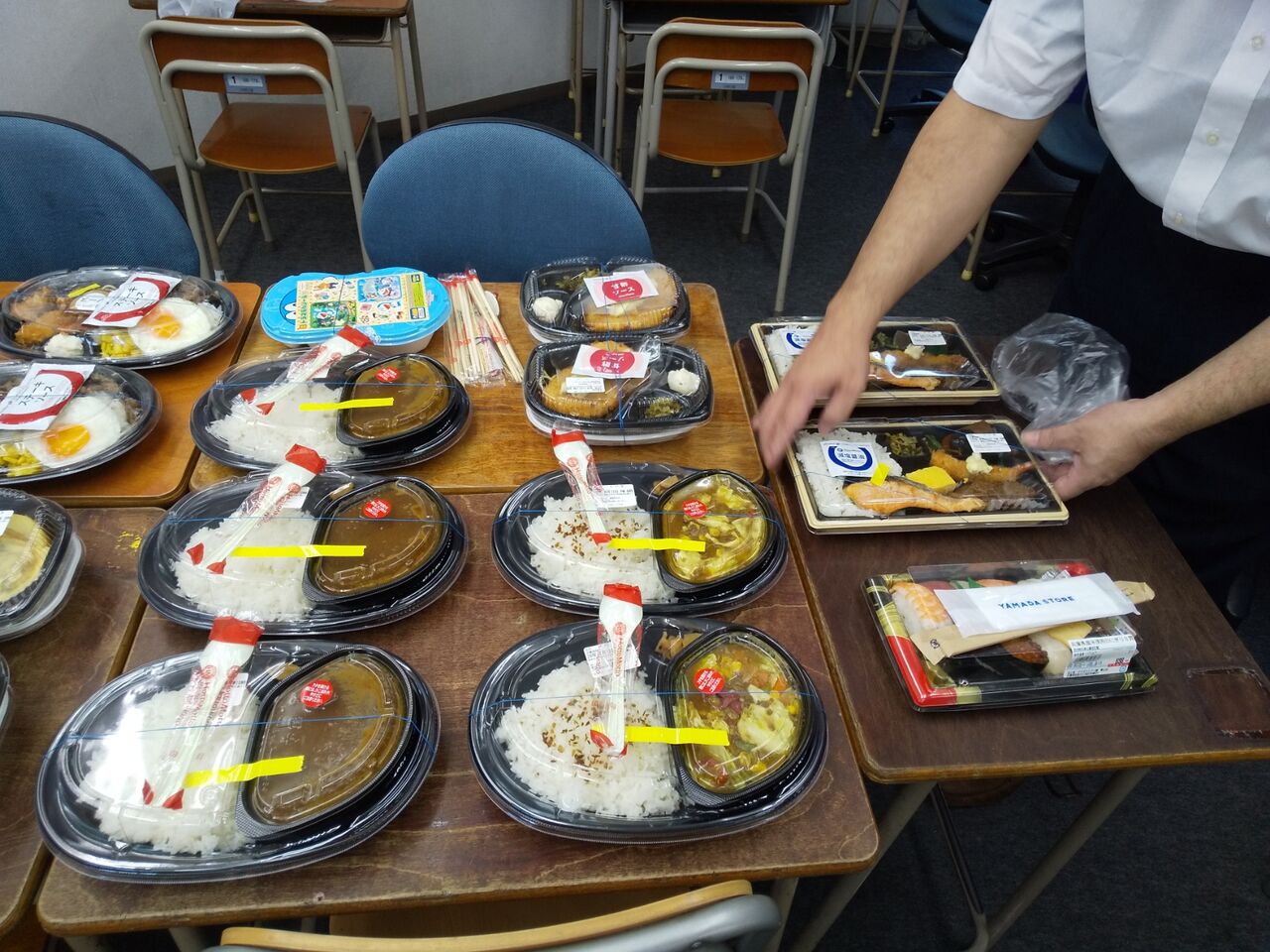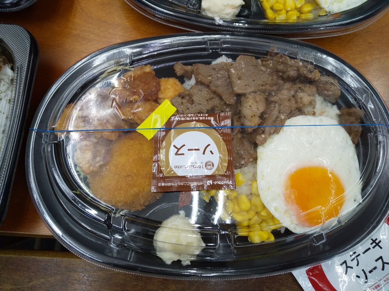 この何キロカロリーあるねん?というステーキ弁当だったのですが、上にステーキソースがおいてあったためか?これまたトップの方で選択権を得ている生徒たちがスルー(笑)